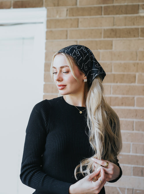 A lightweight lemon-print scarf shifts effortlessly from neck tie to top to headscarf in a stylish snap.
